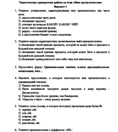 Тест: Имя прилагательное — Русский язык 3 класс итоговый тест по теме «Имя прилагательное» Русский язык 3 класс | ID: 1024 | Дата:
